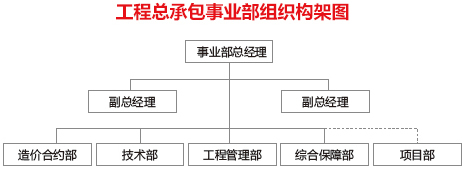 工程總承包事業(yè)部下設(shè)工程管理部、技術(shù)部、造價(jià)合約部、綜合保障部。四部門全面負(fù)責(zé)總承包項(xiàng)目的實(shí)施、運(yùn)行和管理。其中,工程管理部主要負(fù)責(zé)項(xiàng)目的施工相關(guān)管理、組織、實(shí)施工作。技術(shù)部主要負(fù)責(zé)協(xié)調(diào)和處理EPC項(xiàng)目實(shí)施過程中所遇到的施工技術(shù)問題和設(shè)計(jì)問題,并結(jié)合業(yè)主方材料設(shè)備技術(shù)要求提出合理的詢價(jià)技術(shù)標(biāo)準(zhǔn)。造價(jià)合約部主要負(fù)責(zé)項(xiàng)目實(shí)施過程中的合同管理,合同風(fēng)險(xiǎn)控制、各專業(yè)分包合同擬定管理以及重要材料設(shè)備的物資采購詢價(jià)工作以及根據(jù)本項(xiàng)目的投資控制目標(biāo)完成項(xiàng)目的投資分解、投資控制及資金支付相關(guān)工作。